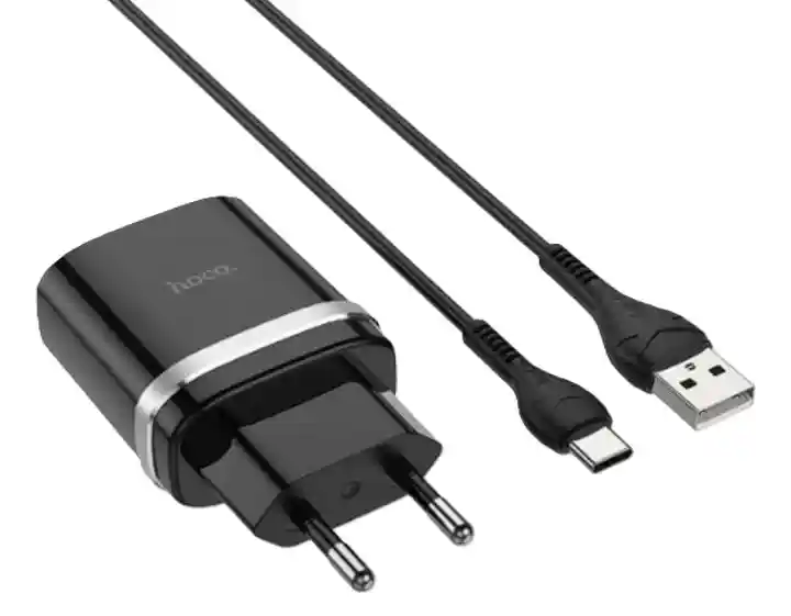 Cargador carga rápida, con una salida de 18 W, cargador completo, incluye un adaptador con entrada tipo USB y un cable de USB a tipo c, de 1m de longitud, compatible con tecnología de carga rápida, marca hoco, modelo C12Q, Color negro.