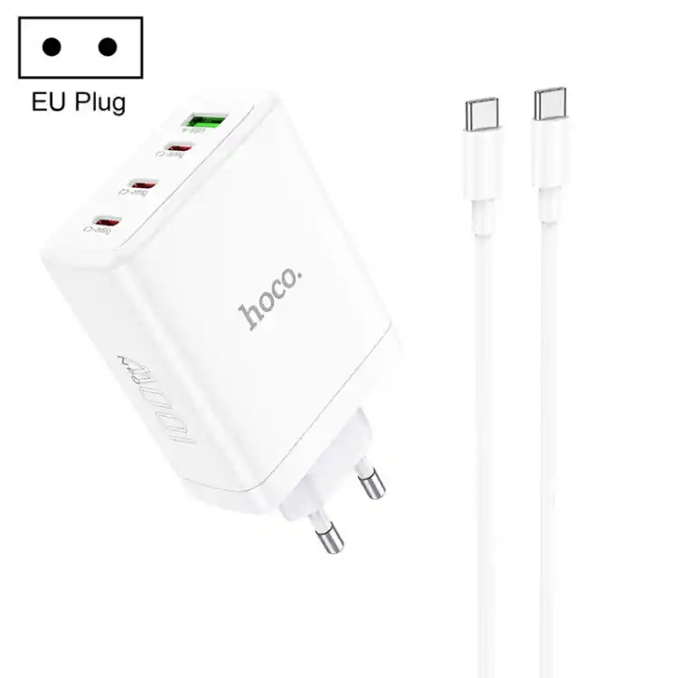 Cargador Rápido Hoco N31 100W con Cable Tipo C - Blanco Optimiza la carga de tus dispositivos con el Cargador Hoco N31, un cargador de pared compacto y eficiente que ofrece hasta 100W de potencia. Con sus tres puertos de carga (dos USB-C y un USB-A), puedes cargar hasta 4 dispositivos a la vez sin perder velocidad. Su tecnología GaN (Nitruro de Galio) regula la energía de manera inteligente, proporcionando una carga rápida y segura para todos tus dispositivos, desde smartphones hasta laptops. El cargador es compatible con los protocolos más avanzados de carga rápida, incluyendo PD, PPS, QC3.0, y más, lo que asegura una experiencia de carga optimizada para cada dispositivo. Hecho de material ignífugo PC, es resistente y confiable, ideal para el uso diario. Además, incluye un cable Tipo-C a Tipo-C de 1 metro para que puedas comenzar a cargar de inmediato. Características Principales: Potencia máxima de 100W para carga rápida y eficiente. Compatible con teléfonos, tabletas, laptops y dispositivos electrónicos. Tecnología GaN para una carga más rápida y segura. Tres puertos (dos USB-C y un USB-A) para cargar hasta 4 dispositivos simultáneamente. Material ignífugo PC y tamaño compacto (97 x 62 x 30 mm). Incluye cable Tipo-C a Tipo-C de 1 metro. Compatible con: Protocolos PD, PPS, QC3.0, FCP, AFC y más. Ideal para todo tipo de dispositivos electrónicos. ¡No te quedes sin batería! El Cargador Hoco N31 100W es la herramienta que necesitas para mantener todos tus dispositivos cargados de forma rápida y segura.