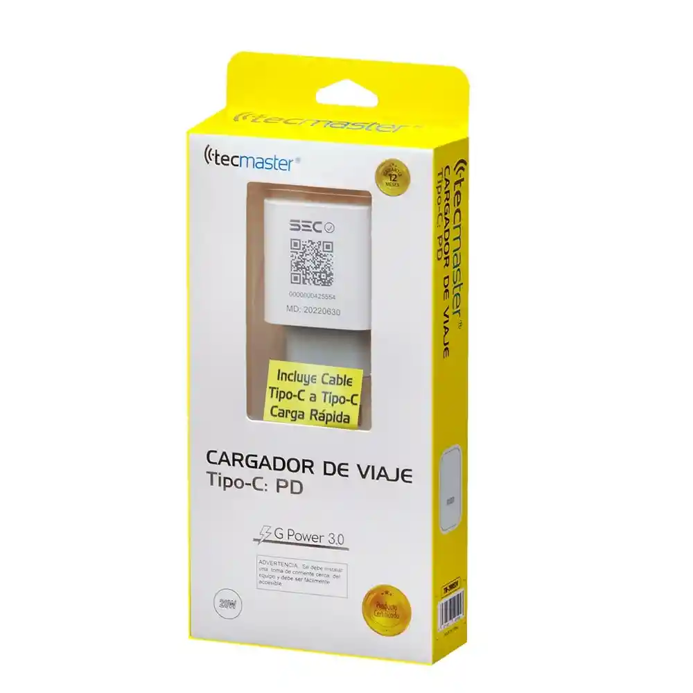 Cargador de Pared Tipo C PD (Incluye Cable USB C) 20W. Tipo de puerto: Tipo-C: PD Carga rapida 20W MÁX Tecnologia PD super carga Chip inteligente de carga se adapta automaticamente para una carga rapida y eficiente Compatibilidad super carga multi Smartphones Salida Tipo-C: 5V3A / 9V2.22A / 12V1.66A. Incluye cable Tipo C a Tipo C