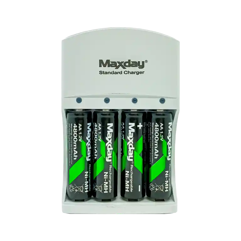Somos Electro Factory tu tienda mayorista en tecnología, empresa de importación directa, contamos con una bodega y tienda física para así brindarte los mejores precios a tu alcance. GARANTÍA: Ofrecemos garantía de 30 días posteriores a la compra. Descripción CARGADOR UNIVERSAL MAXDAY (AA/AAA/1.20V) CON 4 PILAS AA (4800 MaH) Cargador de pila/baterias, compatible con pilas recargables AA, AAA y 9V Ni-MH Ni-Cd Incluye 4 pilas recargables AA NiMH de 4800 MaH • La carga lenta mantiene las baterías a plena capacidad.
