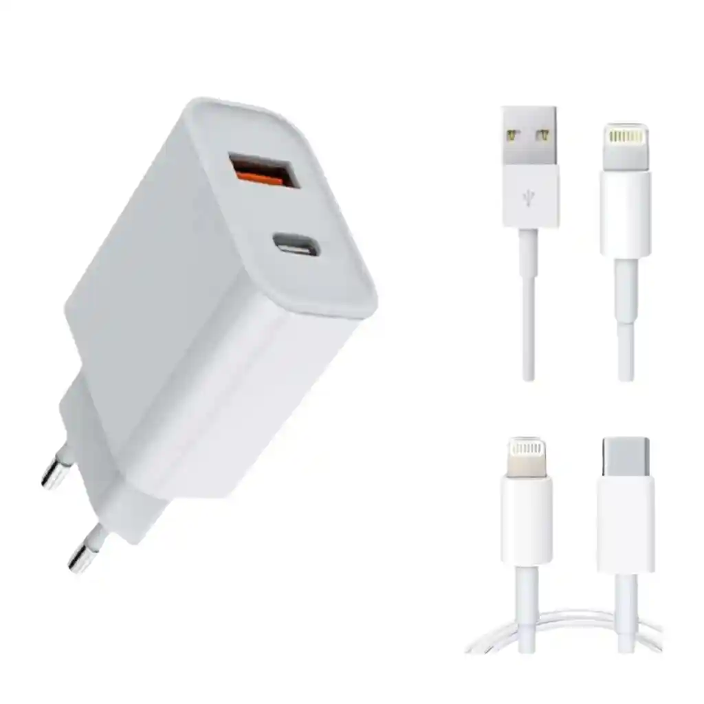 el pack incluye adaptador doble usb y usbc un cable usb a lignith y usb c a lignith