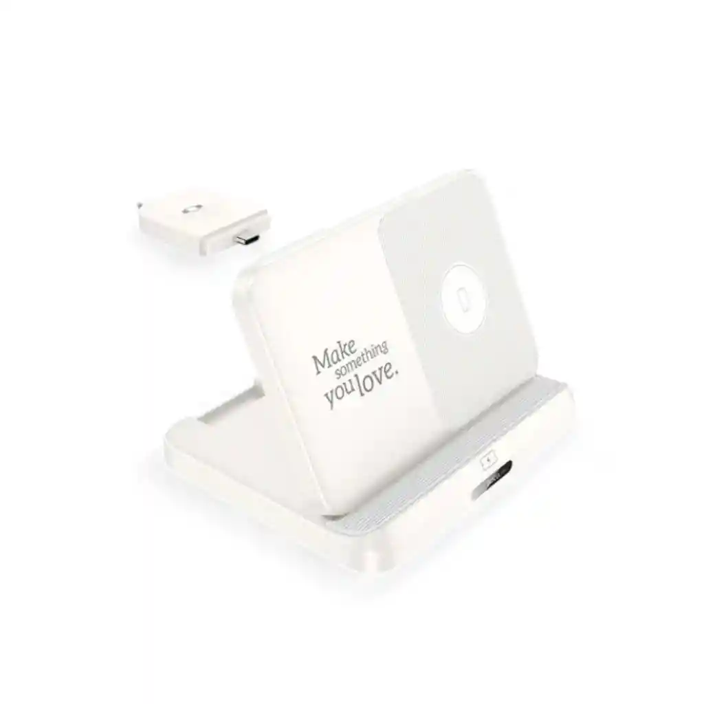 Hoco CQ7 3 en 1 Wireless Charging Foldable Stand de carga – Blanco ¡Mantén todos tus dispositivos cargados de manera práctica y elegante con el cargador inalámbrico plegable Hoco CQ7! Diseñado para cubrir todas tus necesidades, este versátil cargador 3 en 1 es ideal para teléfonos, auriculares y relojes inteligentes, ofreciendo una experiencia de carga eficiente y organizada. Características destacadas: 🔋 Compatibilidad universal para relojes El Hoco CQ7 es único en su clase al ser compatible tanto con Apple Watch (Serie 1-9, SE/SE2, Ultra/Ultra2) como con Samsung Watch (Generaciones 1-5). Disfruta de la conveniencia de un solo dispositivo para ambas marcas. ⚡ Opciones de carga rápidas y seguras Ofrece múltiples potencias de carga para satisfacer las necesidades de cada dispositivo: Teléfonos: 5W / 7.5W / 10W / 15W. Auriculares: 5W. Relojes: 2.5W. Todo esto respaldado por un sistema de carga inalámbrica rápida y segura. 💡 Diseño compacto y plegable Llévalo contigo donde quieras gracias a su diseño portátil y plegable. Perfecto para viajes, oficinas o cualquier espacio reducido. ⚙️ Entrada avanzada tipo C Incluye entrada Tipo-C con soporte para 5V/3A y 9V/3A. Cuando se utiliza con un cargador PD/QC de 20W o más (no incluido), garantiza un rendimiento excepcional en cada carga. 🏗️ Materiales premium Fabricado con ABS y PC de alta calidad, este cargador es duradero, resistente y conserva una apariencia moderna para cualquier entorno. Especificaciones técnicas: Entrada: Tipo-C 5V/3A, 9V/3A. Salidas: Teléfonos: 5W / 7.5W / 10W / 15W. Auriculares: 5W. Relojes: 2.5W. Compatibilidad: Smartphones, auriculares y relojes compatibles con el protocolo Qi. Dimensiones: 145 x 120 x 26 mm. Peso: 234 g. Nota importante: Para un rendimiento óptimo, utilízalo con un cargador de 20W o más conectado mediante un cable USB-C a USB-C. ¡Simplifica tu rutina de carga con el Hoco CQ7 y mantén todos tus dispositivos listos para usarse! 🌟