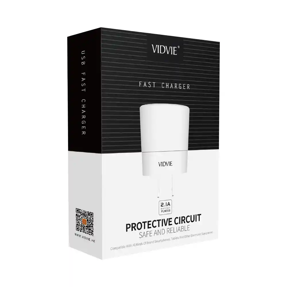 CARGADOR VIDVIE PLE208 PARA ANDROID -TIPO C - iOS CONSULTAR DISPONIBILIDAD CARACTERÍSTICAS MODELO: PLE208 ENTRADA: 100-240V,50/60Hz 0.3A SALIDA: 5V-2.1A(MAX) PUERTO USB: 2-PUERTOS (1 for android 1 for iOS) TEMPERATURA DE TRABAJO: - 10°C - 50°C COLOR: BLANCO
