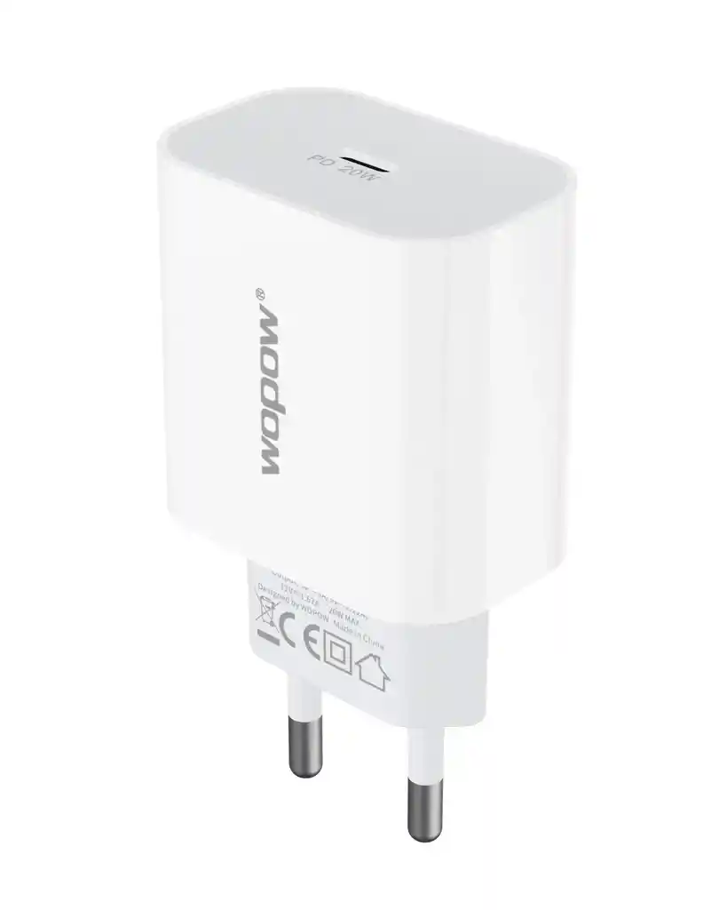 Cargador/adaptador Wopow 20W Inteligente (SIN CABLE) Un puerto de carga PD-Tipo C Función de carga rápida Preserva su dispositivo mientras se carga si la corriente eléctrica es inestable Compatible con todos los dispositivos iPhone, Samsung, Huawei, Realme, Infinix y Oppo Entrada: 100-240V/0.5A Salida: 5V3A - 20 vatios el color es blanco Función de carga inteligente Marca internacional WOPOW Cabezal de carga versátil Puerto de carga BD tipo C La función de carga rápida protege su dispositivo durante la carga si la fuente de alimentación. (NO RECOMENDADO PARA "IPHONE 15" , NO COMPATIBLE).
