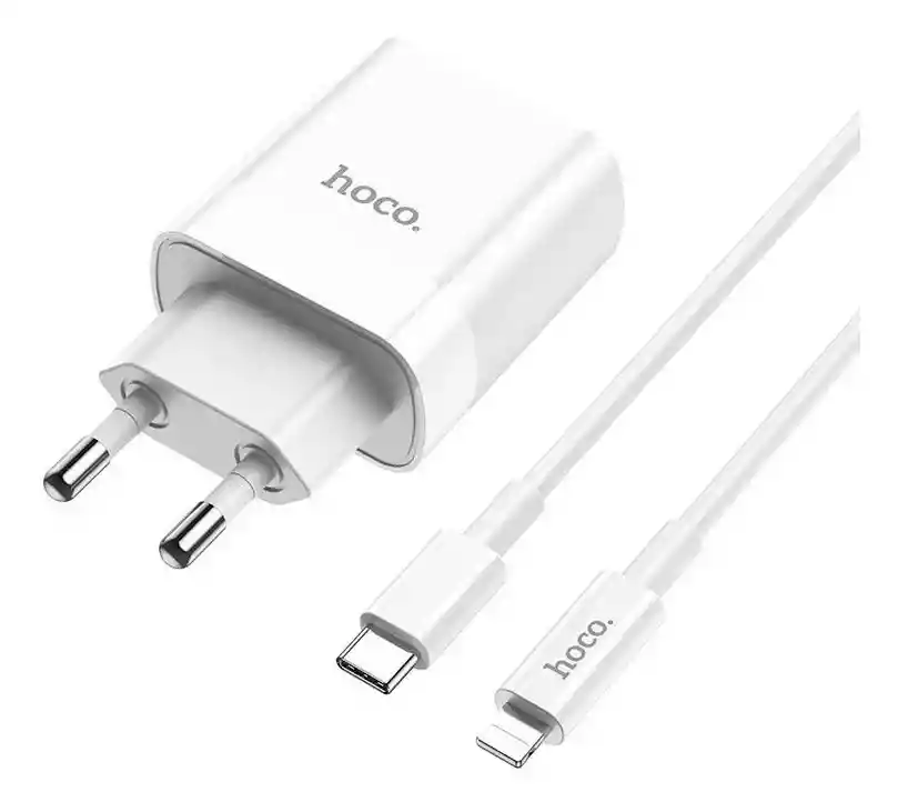 Cargador PD + QC 3.0 20W Incluye cable USB Tipo C a Tipo C PD. Compatible con Iphone, Ipad y dispositivos Samsung. Cargador de pared C80A Rápido, PD 20W + QC3.0, salida USB / Type-C, configurado con cable tipo-c a lightning 1. Material: PC ignífugo. 2. Tamaños: 85 * 46 * 25 mm. Peso del cargador individual: 46 g. Conjunto con peso del cable: 72g. 3. Salida: USB - QC 18W, Tipo-C - 9V / 2.22A, 12V / 1.67A (PD 20W). Salida total: 5V / 3.1A. 4. Soporte para PD3.0, QC3.0 / QC2.0, Huawei FCP, Samsung AFC y otros protocolos de carga rápida. (si cambia el cable) 6. Incluye cable de 1 metro de Lightning a Tipo-C PD