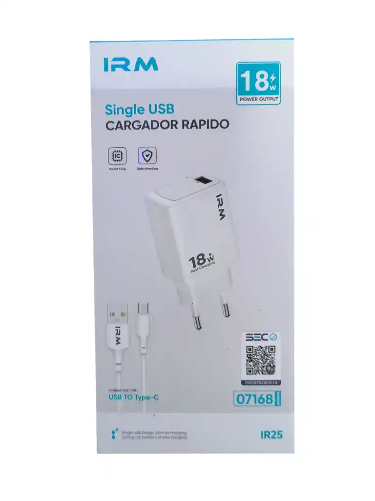 Cargador Completo certificado Adaptador de un usb 18w + cable usb a tipo c 1 metro Diseño USB único, pensado para la carga. Soluciona el problema de la carga lenta.