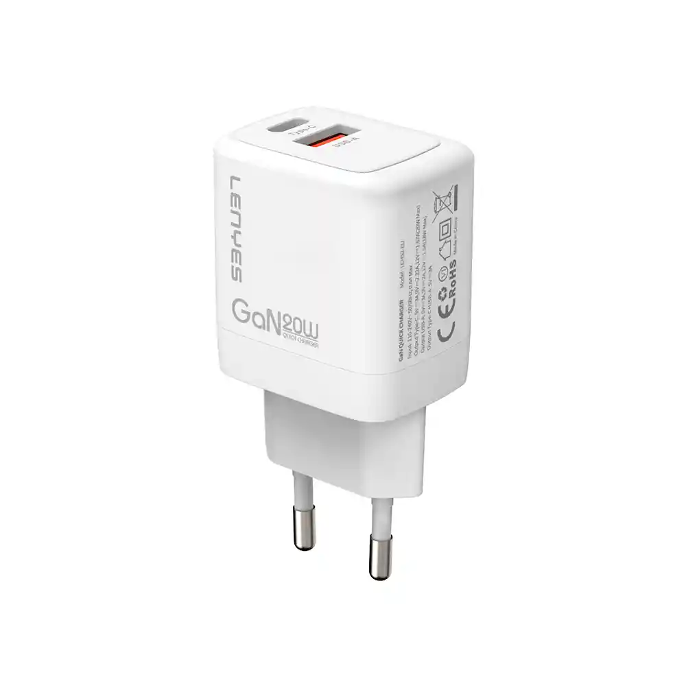 El Cargador Lenyes LCH52EUTC-I ofrece carga rápida de hasta 20W, ideal para smartphones y dispositivos compatibles con tecnología de carga rápida. Incluye cable Lightning, permitiendo cargar equipos Apple de forma segura y eficiente desde el primer uso. Cuenta con doble salida USB-A y USB-C, lo que permite cargar dos dispositivos simultáneamente con excelente estabilidad. Su amplio rango de entrada 100-240V lo hace perfecto para uso en casa, oficina o viajes. Especificaciones técnicas: Modelo: LCH52EUTC-I. Potencia máxima: 20W. Entrada: 100-240V 50/60Hz 0.6A máximo. Salida USB-A: DC 5V-3A / 9V-2.22A / 12V-1.67A (20W máximo). Salida USB-C: DC 5V-3A / 9V-2.22A / 12V-1.67A (20W máximo). Puertos: 1 x USB-A + 1 x USB-C. Incluye: Cable Lightning. Compatibilidad: Dispositivos con puerto USB y Lightning.