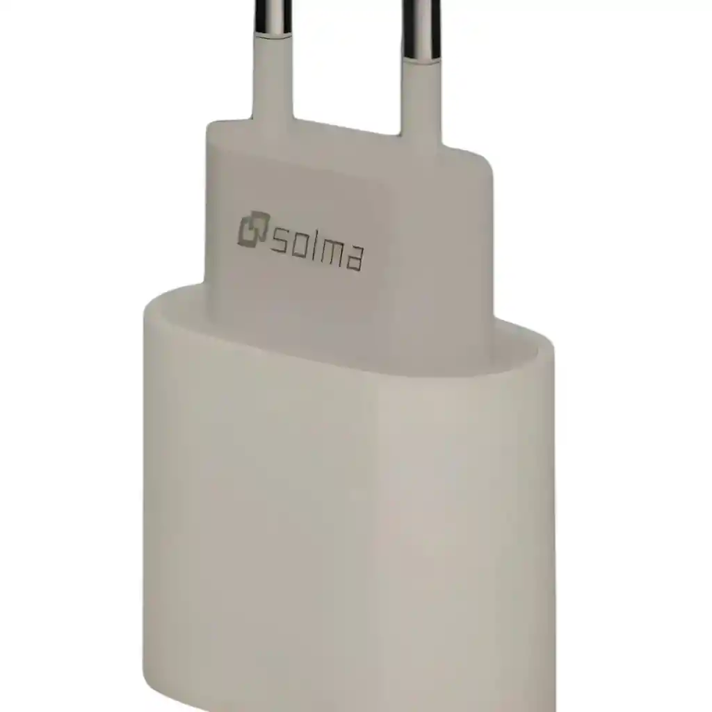 Cargador de pared Solma 20W en color blanco, ideal para cargar smartphones y otros dispositivos compatibles con carga rápida. Su diseño compacto lo hace perfecto para usar en casa, oficina o llevar en viajes. Compatible con iPhone, Android, tablets y más. 🔌📱