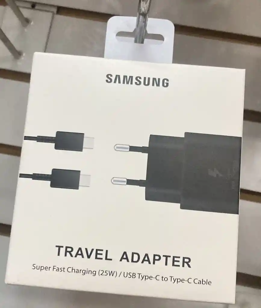 El Cargador Super Rápido proporciona una carga máxima directa de 25 W, Le entrega a tu dispositivo toda la energía que necesita, con el adaptador de viaje original Samsung Ultra-Fast. Gracias a los 25 W de potencia, proporciona una carga rápida y confiable. Samsung Galaxy S22 / S21 / S21 Plus / S21 Ultra / S21 FE / S20 FE / S20 / S20 Plus / S20 Ultra. Samsung Galaxy Note 10 / Note 10 Lite / Note 20 / Note 20 Ultra Samsung Galaxy Z Fold 2 5G Samsung Galaxy A70 / A80 / A90 / A31s / A52 y otros teléfonos móvil con tecnología PPS Entrada: 100-240V — 50-60Hz 0.7A Salida: PDO — 5V 3A ó 9V 2.77A PPS–3.3-5.9V 3A ó 3,3-11V 2.25A Incluye: *1 Adaptador de corriente Samsung Carga Super Rápida 25W *1 Cable de carga rápida USB-C / USB-C 5A (1 Metro)