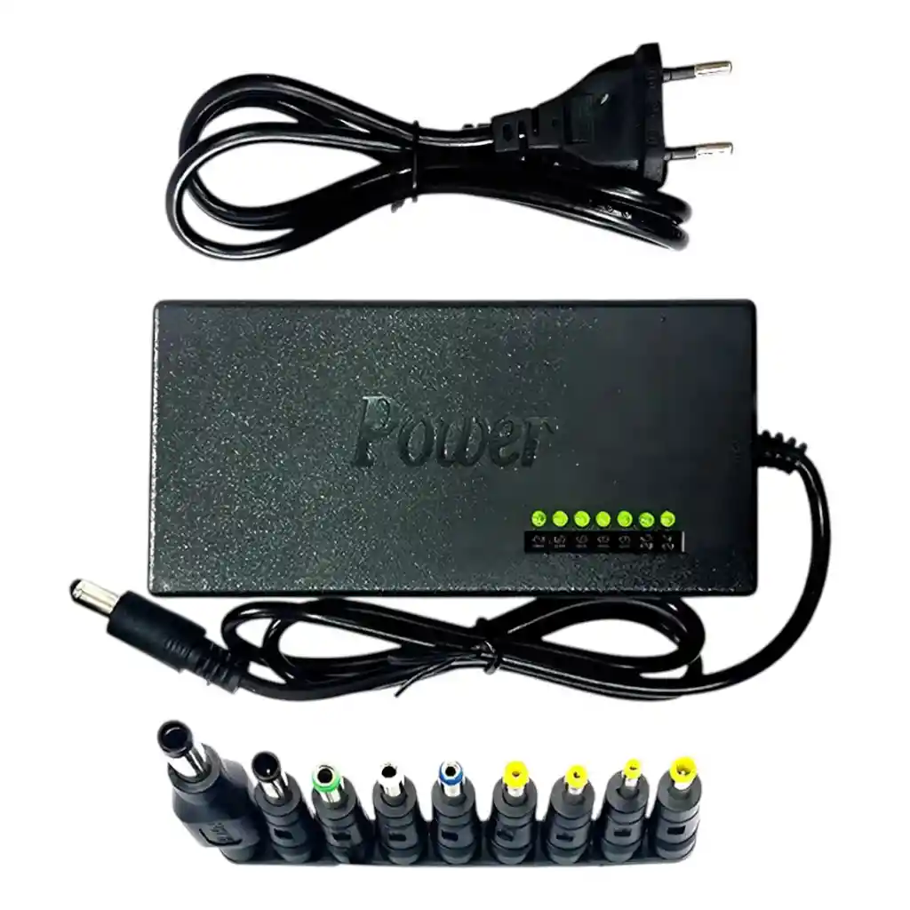 Cargador universal para notebook de 120W, compatible con múltiples marcas y modelos gracias a sus puntas intercambiables. Ofrece voltaje regulable y carga estable para un rendimiento seguro y eficiente. Ideal como reemplazo o cargador adicional para casa, oficina o viaje. 💻⚡
