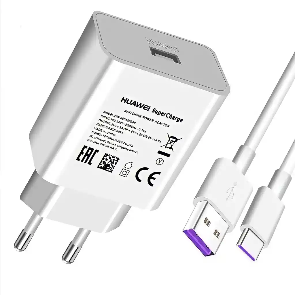 Cargador 5V 2.4A con cable Usb C compatible con Huawei. Cuenta con tecnología de carga rápida 2.4A de potencia de salida, con el que podrá cargar su dispositivo en menos tiempo que los cargadores estandar. Compatible con Huawei: - Huawei Mate 9 - P10 - Mate 10 - P20 - P20 Lite - Honor View 10 - Honor Play - Mate 20 - Mate 20 Lite - P30 - P30 Lite - P40 Lite Características: Color: Blanco Longitud: 1 m Puerto: Usb C Contiene: Adaptador 5V + cable tipo C Salida 5V - 2.4Amp / 9V - 2.4Amp