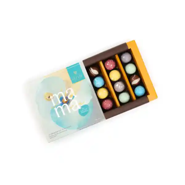 Es una selección de bombones premium rellenos sin azúcar, elaborados con chocolate de leche y chocolate bitter, en sabores avellana, caramelo, maracuyá, menta y maní. Una alternativa consciente y sofisticada, pensada para sorprender a mamá con sabor y dedicación.