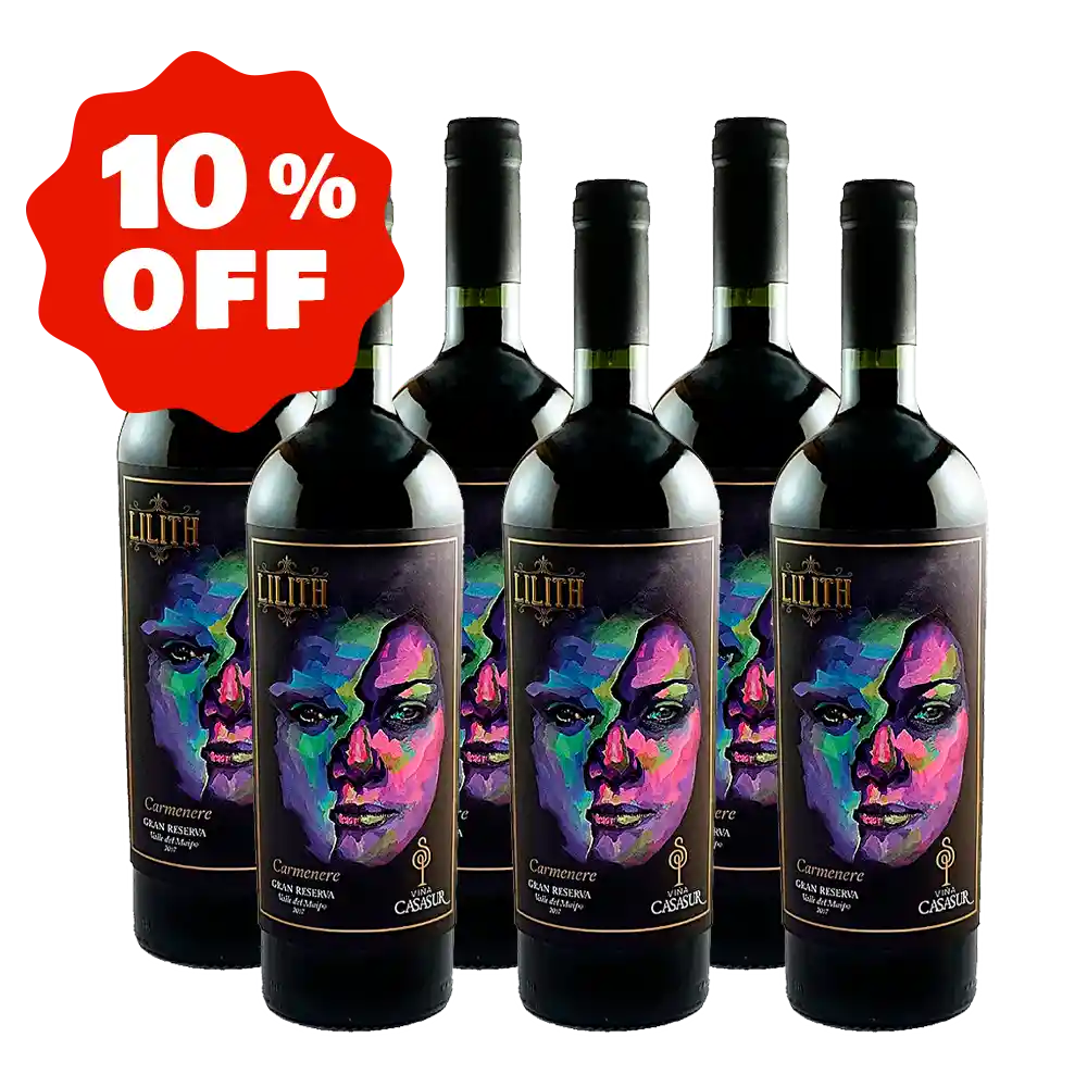 Lilith es la mujer que antecedió a Eva. Se conoce por colocar resistencia al sometimiento de Adán, ya que no estaba de acuerdo con las pretensiones de dominio de él, por lo cual decidió abandonar el paraíso y seguir su visión de vida. Por ello, este vino es una oda a la mujer actual, empoderada, perseverante y valiente. Lilith Gran Reserva Carmenere es un corte de la cepa Carmenere, que tiene mucho carácter y estructura, las que después de 14 meses de barricas de primer y segundo uso han mostrado una perfecta armonía en este Carmenere. Es un vino con una estructura equilibrada, que ha mejorado en botella. Todos los procesos, desde su cosecha hasta su etiquetado se realizaron manualmente.