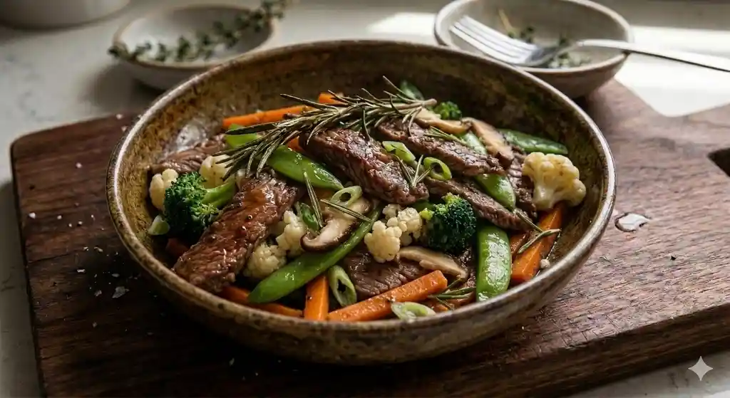 La carne salteada con verduras es un plato de trozos de carne cocinados junto a vegetales frescos. . Producto viene sellado al vacio y congelado. Formato individual 250 grs aprox