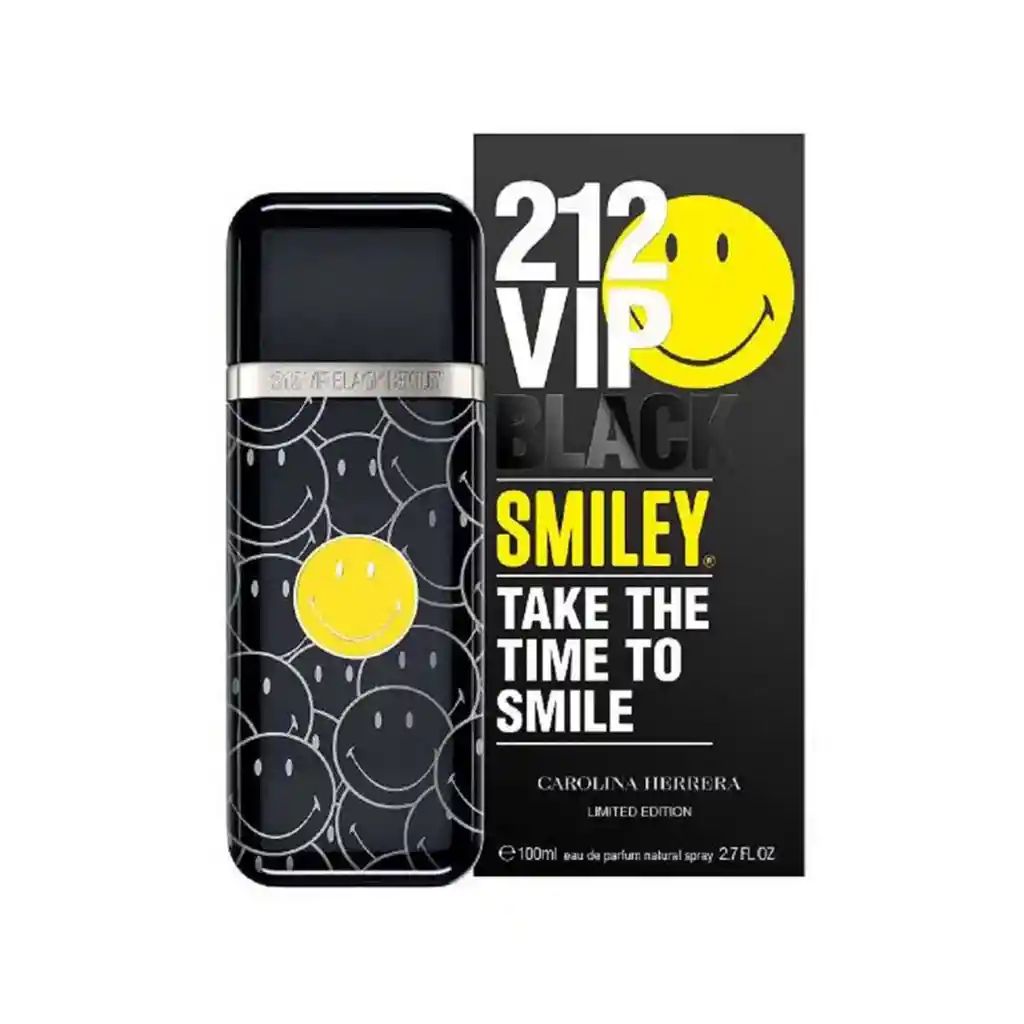 212 VIP Black Smiley de Carolina Herrera es una fragancia de la familia olfativa Aromática para Hombres. Esta fragrancia es nueva. 212 VIP Black Smiley se lanzó en 2022. 212 VIP Black Smiley fue creada por Juliette Karagueuzoglou y Carlos Benaim. Las Notas de Salida son naranja sanguina, neroli de Túnez y jengibre; las Notas de Corazón son pimienta de Madagascar, sésamo (ajonjolí) y extracto de lavanda; las Notas de Fondo son Piel, vaina de vainilla y almendras dulces