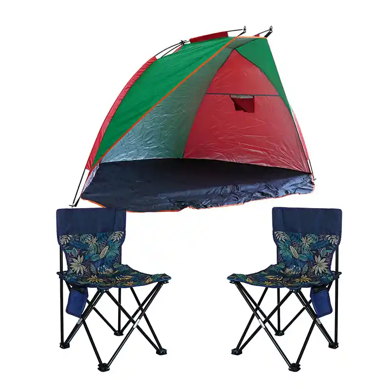 Exponerse al sol no es una opción hoy en día. Por eso, si quieres cuidar tu piel y la de tu familia, no puedes ir a la playa sin tu Carpa cortaviento para 2 personas, ya que en ella estarás cómodo y podrás disfrutar del sol, la arena y el mar de manera segura. Los quitasoles durante años fueron los protagonistas de las playas, sin embargo, cuando el viento aparece, no hay uno que resista la fuerza de la naturaleza y muchas veces terminan rompiéndose o, peor aún, volando por toda la playa con el inminente riesgo de provocar un accidente o daños severos a otras personas. Además se complementa con las sillas, haciendo este pack perfecto para ir a la playa y estar cómodos. Carpa: Tamaño: Alto: 220cm. Ancho: 110cm. Largo: 140cm. Sillas: Tamaño: Ancho:36,5cm, largo: 36,5cm, alto: 65cm.