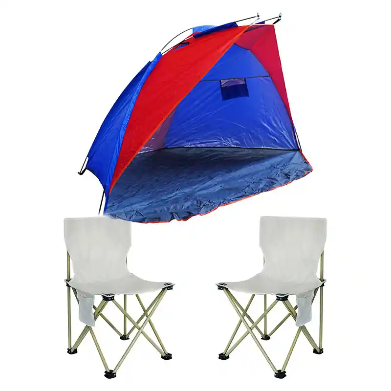 Exponerse al sol no es una opción hoy en día. Por eso, si quieres cuidar tu piel y la de tu familia, no puedes ir a la playa sin tu Carpa cortaviento para 2 personas, ya que en ella estarás cómodo y podrás disfrutar del sol, la arena y el mar de manera segura. Los quitasoles durante años fueron los protagonistas de las playas, sin embargo, cuando el viento aparece, no hay uno que resista la fuerza de la naturaleza y muchas veces terminan rompiéndose o, peor aún, volando por toda la playa con el inminente riesgo de provocar un accidente o daños severos a otras personas. Además se complementa con las sillas, haciendo este pack perfecto para ir a la playa y estar cómodos. Carpa: Tamaño: Alto: 220cm. Ancho: 110cm. Largo: 140cm. Sillas: Tamaño: Ancho:36,5cm, largo: 36,5cm, alto: 65cm.