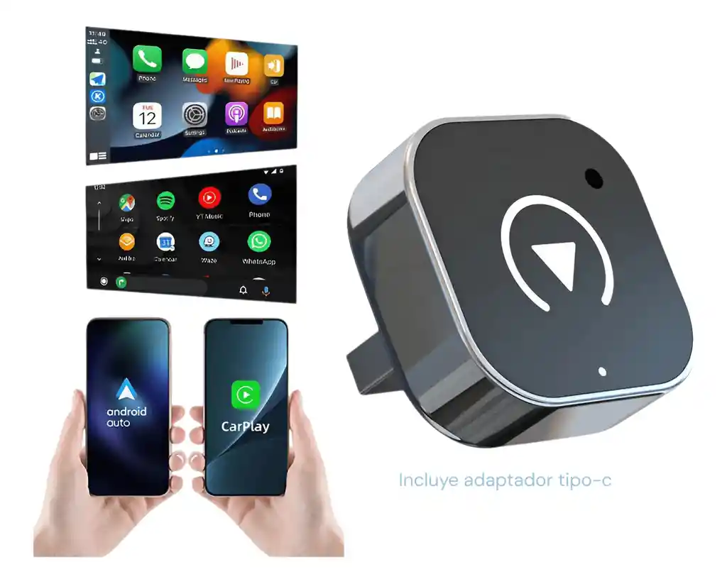 Adaptador inalámbrico para CarPlay y Android Auto con conexión USB y Tipo-C, uso práctico sin cables