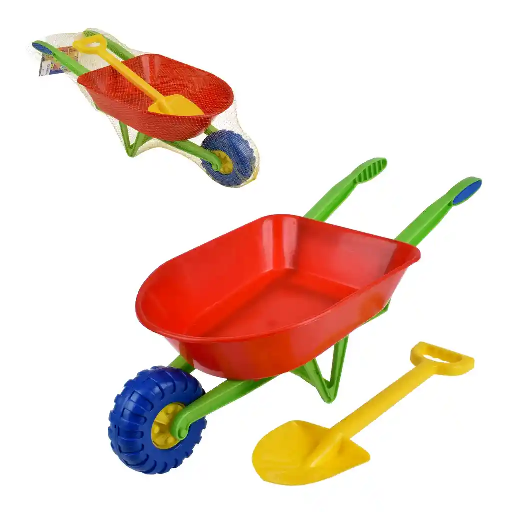 Carretilla con pala. Recurso pedagógico diseñado como juego de rol, para rincón de juegos tanto de patio como en espacio cerrado. Ayuda a desarrollar habilidades de sociabilización, imaginación y creatividad. Material didáctico fabricado en plástico de alta resistencia y con pinturas atóxicas. Sugerido para niños y niñas a partir de los 3 años . Presentación en display
