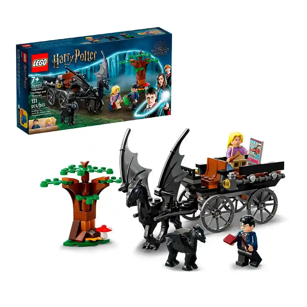 El set LEGO® Harry Potter™ Carruaje y Thestrals de Hogwarts™ (76400) es un juguete construible para niños a partir de 7 años con mágicos animales que cuidar y paseos en carruaje llenos de aventuras. Emblemáticos personajes y criaturas A los jóvenes magos, brujas y Muggles les encantará acompañar a Harry Potter y Luna Lovegood™ al Bosque Prohibido, donde encontrarán un ejemplar adulto y una cría de Thestral. El set contiene una manzana y carne para alimentar a estos fabulosos caballos alados antes de montar en el carruaje tirado por el Thestral rumbo a quién sabe qué emocionante y mágico destino. Este versátil set animará a los peques a recrear memorables escenas de Harry Potter y la Orden del Fénix™ y a interpretar infinidad de aventuras inventadas por ellos. La app gratuita Instrucciones de Montaje LEGO permite a los niños ver, acercar y girar el modelo mientras construyen, lo que les aporta un increíble sentido de inmersión e interacción durante el proceso. • Rebosante de diversión y juego: El set LEGO® Harry Potter™ Carruaje y Thestrals de Hogwarts™ (76400) se construye rápidamente e inspirará una aventura mágica tras otra • Emblemáticos personajes: Contiene minifiguras de Harry Potter™ y Luna Lovegood™, un ejemplar adulto y una cría de Thestral, y un carruaje construible que se engancha al Thestral adulto. • Muchas formas de jugar: El set animará a los peques a recrear sus escenas favoritas de Harry Potter y la Orden del Fénix™, así como a interpretar sus propias e imaginativas aventuras • Regalo mágico: Este set construible lleva la magia de Harry Potter™ a los niños de 7 años o más, tanto si lo reciben como regalo de cumpleaños, como obsequio en fiestas señaladas o como premio especial. • Construye, juega y decora: El carruaje tirado por el Thestral adulto (con las alas plegadas) mide aproximadamente 9 cm de altura, 17 cm de longitud y 6 cm de anchura. • Detalles de gran realismo: El set incluye accesorios que los peques reconocerán de las películas, como carne y una manzana para dar de comer a los Thestrals y un ejemplar de la famosa revista El Quisquilloso. • Una experiencia de construcción envolvente: La app gratuita Instrucciones de Montaje LEGO® permite a los usuarios ver, acercar y girar el modelo mientras lo construyen. • Parte de una amplia gama: Los sets LEGO® Harry Potter™ ponen la emoción de la saga en las manos de todos los jóvenes magos, brujas y Muggles en forma de populares personajes, lugares conocidos y mágicas aventuras. • Calidad garantizada: Los componentes LEGO® cumplen estrictas normas de calidad del sector, por lo que ofrecen siempre las mismas cualidades, son compatibles entre sí, y se conectan y separan fácilmente una y otra vez. • Seguridad acreditada: Los componentes LEGO® se dejan caer, se calientan, se aplastan, se retuercen y se analizan para verificar que satisfacen rigurosos estándares mundiales de seguridad."
