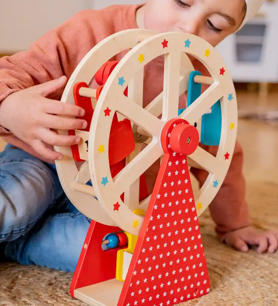 <p><meta charset="utf-8"><span data-mce-fragment="1"></span>Precioso y romántico carrusel de madera de juguete! Contiene 3 animalitos para subir y bajar de la rueda.<br></p> <p>Idealmente para pequeños desde los 24 meses. </p> <p><meta charset="utf-8"><span>Medidas: 25 × 15.5 × 32 cm</span></p> <p> </p>