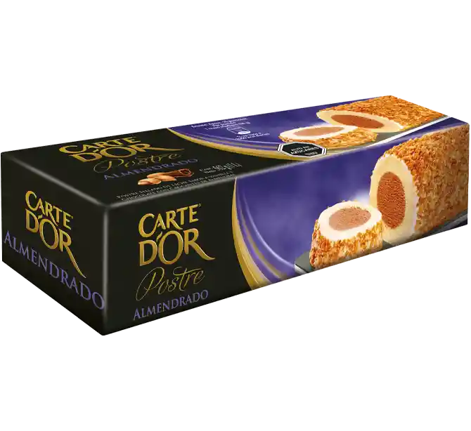 Postre helado de crema sabor chocolate y vainilla con trocitos de almendras