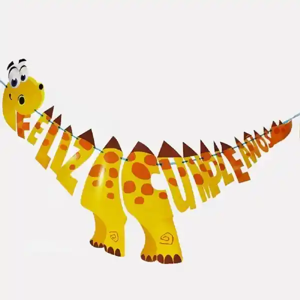 Cartel Feliz Cumpleaños Dinosaurio Peque Amarillo