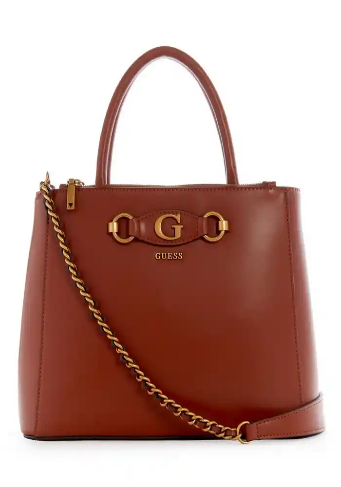 Modelo: VB865406. Cartera con asa y correa ajustable al hombro. Diseño de tono liso con letras Guess metalicas. Bolsillo con cierre de cremallera. Materiales: 100% PU.