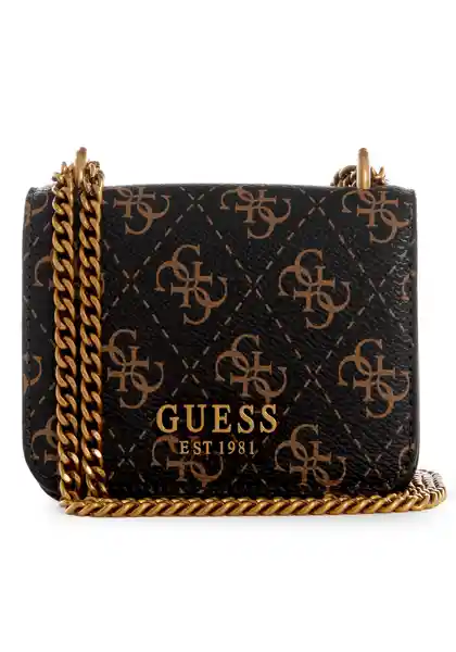 Modelo: QB841677. Mini Cartera Con Doble Asa de Cadena al Hombro. Diseño de Tono Liso Con Estampado Guess. Bolsillos Con Broche Magnético. Materiales: 100% Poliéster.