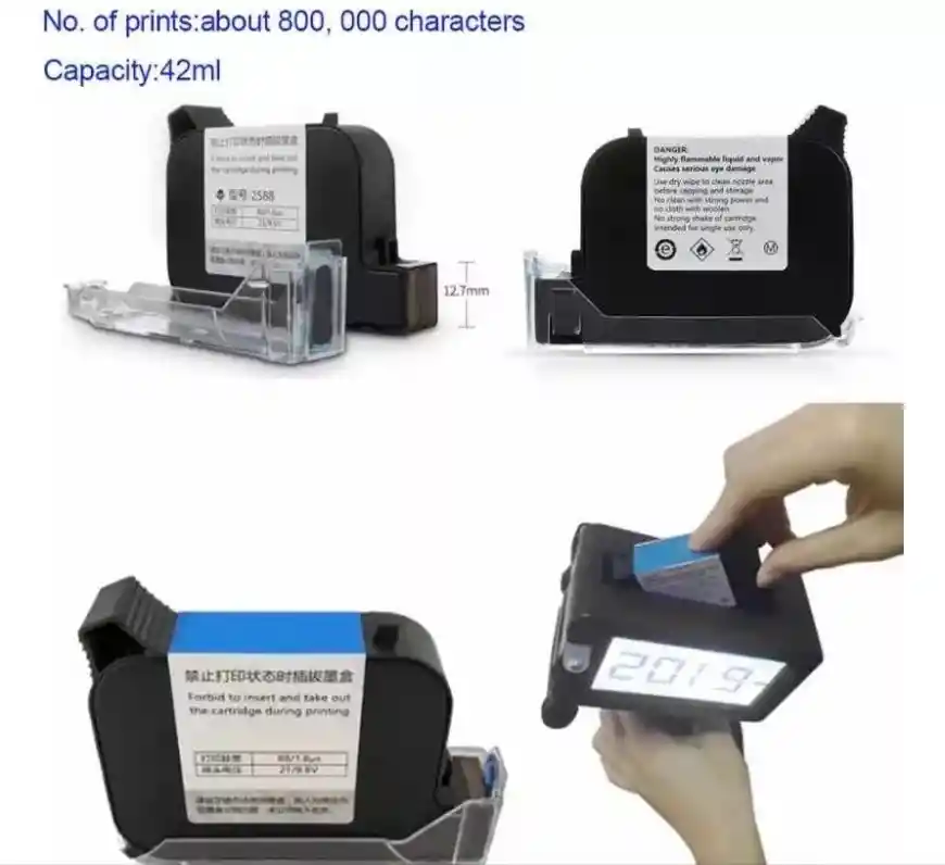 Cartucho de tinta negra para impresora de inyección de tinta portátil Zk1690. 42 ml de gran capacidad, puede imprimir alrededor de 300.000 caracteres. Secado rápido con fuerte adherencia, impermeable, ignífugo y resistente a la fricción. Resolución de alta definición de 600 DPI altura, de fuente de 2 a 12,7 cm, efecto de imagen de restauración real. Nota: Cuando el cartucho de tinta no esté en uso, debe quitarlo la impresora para evitar que la boquilla se seque al aire. Especificaciones: Color de tinta: Negro Capacidad: 42 ml Resolución de impresión: hasta 600 ppp, valor predeterminado de fábrica 300x300 ppp Cantidad de boquillas: 300 Altura de impresión: 2-12,7 mm Distancia de impresión: 2-5 mm Tiempo de apertura: 60 min (varía según el entorno) Tiempo de secado: 2-5 s (varía según el material del objeto) Entorno de trabajo: 15-30 °C, 35-80% RH Entorno de la tienda: -20-40 °C, 20-80RH Lista de empaque: 1 * Cartucho de tinta