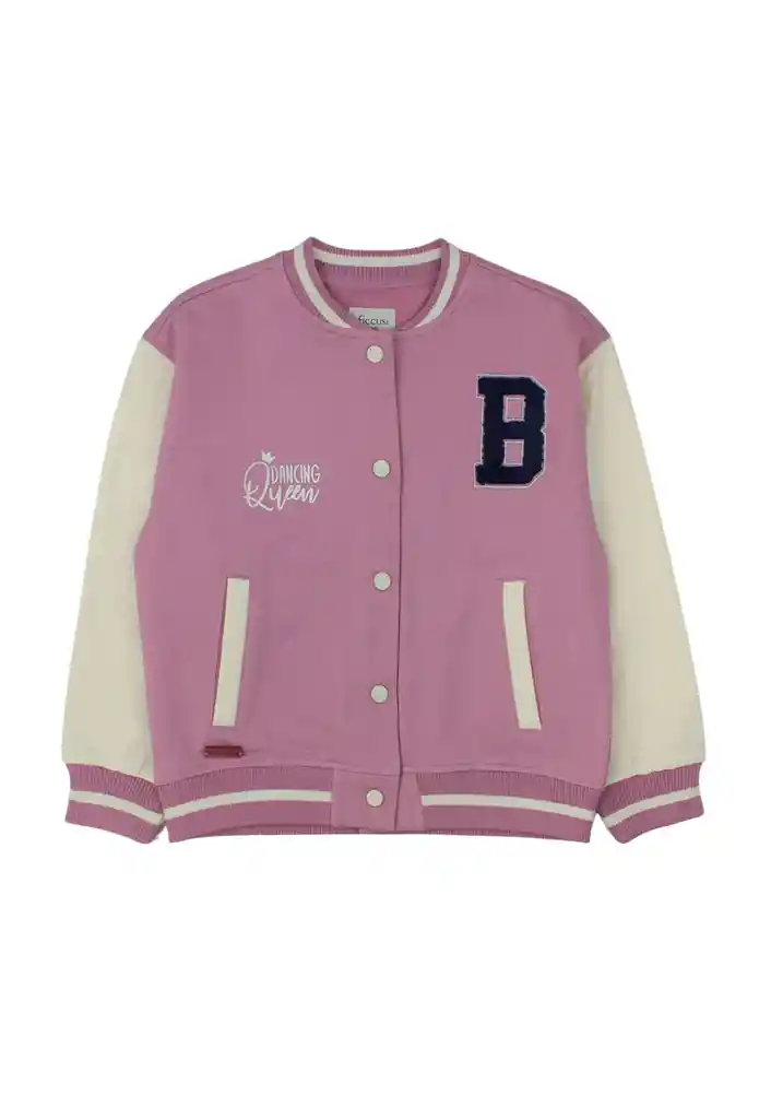 Casaca kids niña bomber academy 315 Talla: 6 años Género: Niña Modelo :Academy Composición: Cuerpo: 80% Algodón 20% Poliéster / Rib: Con Elastano Garantía: 6 meses Cuidados de la prenda: Lavado con agua a tº máxima de 30º. No blanquear. No dejar en remojo. No secar a máquina. No planchar sobre aplicación