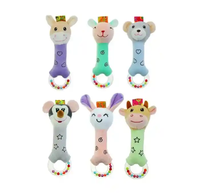 Estimula a tu bebe desde pequeño con estos lindos sonajeros con forma de animalitos conejito , cada diseño lo llevara a una nueva experiencia la parte en forma de animal es de peluche así que no mas golpes, como los que ocurren con los típicos sonajeros duros.