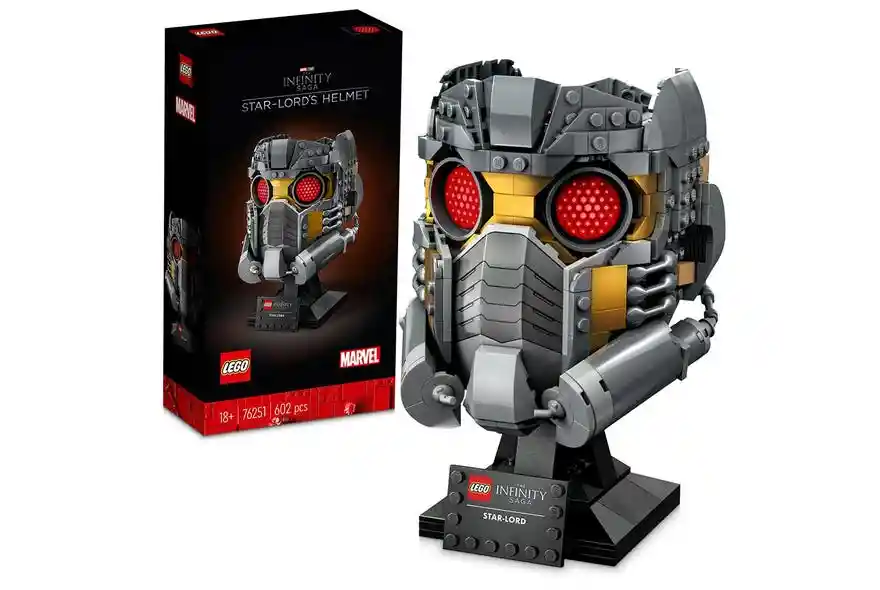 Sumérgete en un avanzado proyecto de modelismo y captura el estilo y la emocionante acción de Guardianes de la Galaxia, las películas de Marvel, con el Casco de Star-Lord LEGO® Marvel (76251). Un emblemático casco para construir y exponer Esta recreación LEGO del inconfundible casco que lleva Star-Lord, el personaje Marvel, permite disfrutar de un gratificante desafío de construcción y, una vez terminado, de una fascinante pieza que atraerá la atención y causará admiración dondequiera que se exponga. Para mayor comodidad, las instrucciones de construcción del set están disponibles en versión digital en la app LEGO Builder. Descubre más sets de construcción LEGO para adultos La gama de sets LEGO para adultos está diseñada para proporcionar una experiencia de construcción y exposición plenamente satisfactoria que cautivará a cualquier entusiasta del modelismo. • Modelo Marvel para fans adultos: Pon a prueba tus superpoderes de construcción creativa con el Casco de Star-Lord LEGO® Marvel (76251) y captura para siempre el emblemático aspecto del líder de los Guardianes de la Galaxia. • Réplica construible: Los 602 ladrillos LEGO® se combinan para recrear el casco de Star-Lord, montado en un sólido soporte con placa decorativa. • Un gratificante desafío: Sumérgete en un proyecto que te permitirá capturar los genuinos detalles de una pieza íntimamente unida a la historia del cómic. • Regalo para adultos: Regala este kit de construcción a cualquier fan de Marvel, modelista o entusiasta de LEGO®. • Exponlo con orgullo: El modelo completo mide aproximadamente 18 cm de altura, 12 cm de anchura y 13 cm de profundidad. • Usa tu dispositivo móvil: Para mayor comodidad, las instrucciones de construcción del set están disponibles en versión digital en la app LEGO Builder. • Relájate y disfruta: La gama de sets LEGO® Adults proporciona una experiencia de construcción que seguirá siendo gratificante mucho después de finalizar el proceso de creación, tanto como la sensación de verlos expuestos. • Calidad garantizada: Los componentes LEGO® cumplen estrictas normas de calidad del sector para asegurarnos de que ofrezcan siempre las mismas cualidades, sean compatibles entre sí y resulte fácil construir con ellos. • Seguridad acreditada: Los elementos y ladrillos LEGO® se dejan caer, se calientan, se aplastan, se retuercen y se analizan para verificar que satisfacen rigurosos estándares mundiales de seguridad.