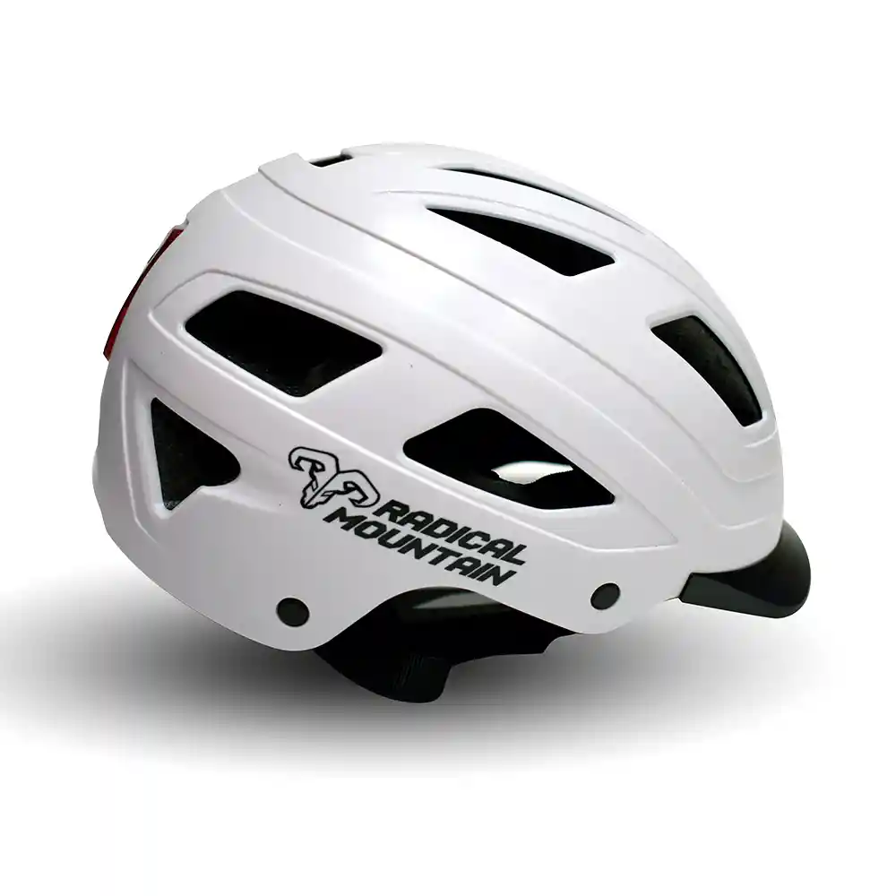 Casco Radical Mountain Urbano Con Luz El Urban Radical es un casco de ciclismo urbano que presenta un diseño de estilo limpio y una cobertura trasera completa. Como ajustar el casco a su medida. En primer lugar, colóquese el casco de forma que la parte delantera este a la misma altura de la parte trasera. Ajuste las correas de manera que su casco no pueda inclinarse hacia adelante o hacia atrás. El caso solo le protegerá si se le ajusta bien. Como ajustar las correas. La correa no debe quedar suelta y se debe ajustar con la hebilla del mentón. Las correas nunca deben cubrir las orejas y el broche de sujeción deberá de ubicarse debajo de su mentón y apoyándose en su cuello, aleje la hebilla de la mandíbula. los extremos sobrantes de las correas deben ser fijados a través del anillo de goma en forma de "O" para que queden sujetos. 14 Agujeros de ventilación. Color Blanco Sistema con correa de ajustes. Regulador de talla. Talla L: (59-61CMM) Material del casco: Policarbonato Peso: 250gramos Mantener el casco en buenas condiciones.