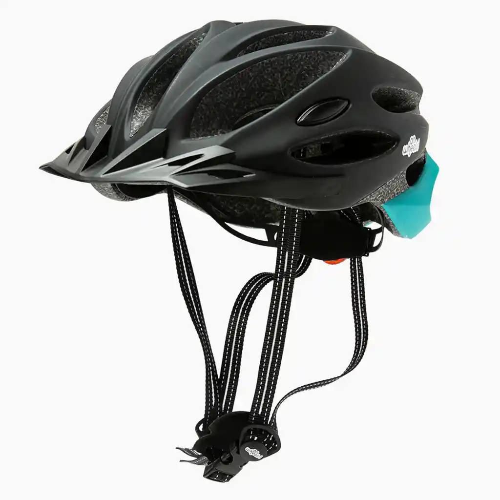 Casco Sport OnWheels! Negro/Turquesa El casco sport OnWheels!, nos trae protección para todos los jóvenes y adultos que les gusta disfruta del aire libre, en su bicicleta, scooter, patines entre otros deportes. Su construcción ligera del casco con la máxima resistencia a los golpes gracias a que su carcasa está compuesta por dos capas inseparables: una interior de eps y otra exterior de policarbonato Características: • El sistema AIR FLOW: un sistema de ventilación guía la corriente de aire a través de las aberturas en la carcasa del casco sin ningún impacto negativo en su estabilidad. • Tamaño del casco: M: 55 – 58 cm, L: 58-61 cm • Un sistema de ajuste de cabeza unisex en la parte trasera del casco te permite hacer que el casco se ajuste perfectamente. • El casco incluye un protector de hebilla acolchado para un ajuste cómodo alrededor de la barbilla. • El casco tiene un forro de malla sobre los agujeros de ventilación delanteros para proteger de desagües y abejas. • El casco también incluye una visera para ayudar a mantener todos los elementos meteorológicos de su visión, el casco cumple con las normas CE EN1078:2012+A1:2012.