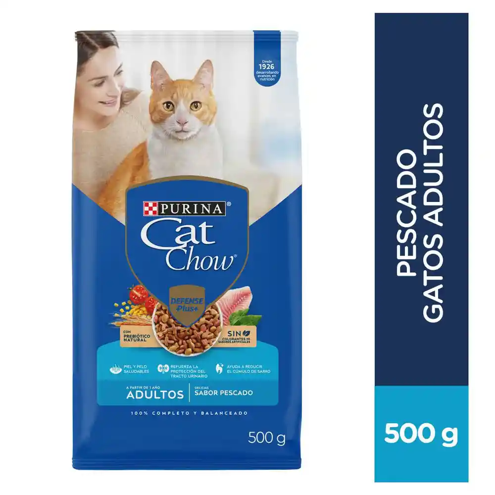 Purina Cat Chow FORMATO GRANEL Adultos delicias de pescado con Forti defense ofrece los nutrientes que tu gato necesita para mantenerse bello y saludable. Contiene pescado, rico en omegas 3 & 6, que ayudan a tener una piel y un pelo saludables.
