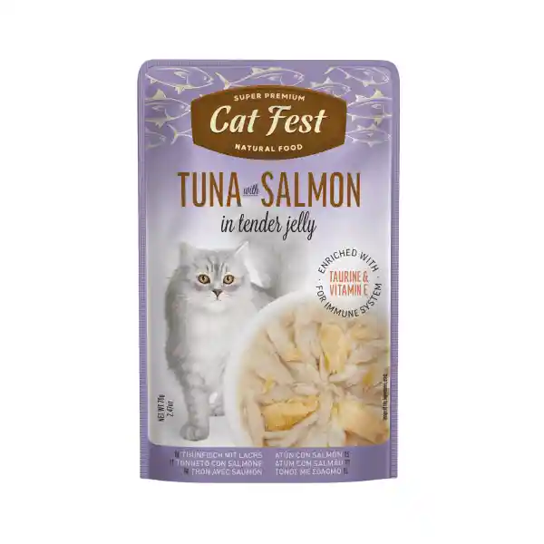 Una comida elaborada con variedades de peces nobles como el atún y el salmón le dará a tu mascota una verdadera sensación de disfrute. El exquisito sabor de este plato natural cautivará incluso a los gourmets más exigentes, mientras que los ingredientes naturales proporcionan una nutrición saludable y bienestar. Servido como alimento complementario.