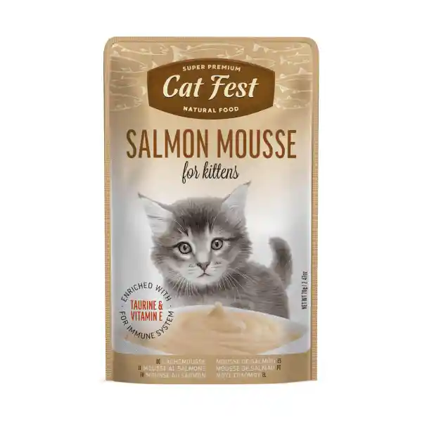 Cat Fest Mousse de Salmón para Gatitos 70g es una opción nutritiva y deliciosa especialmente formulada para acompañar a tu pequeño felino durante su etapa más crucial: el crecimiento. Con una textura suave y tierna, este mousse facilita la transición alimenticia de los gatitos, siendo ideal para sus pequeñas bocas y sistemas digestivos aún en desarrollo.