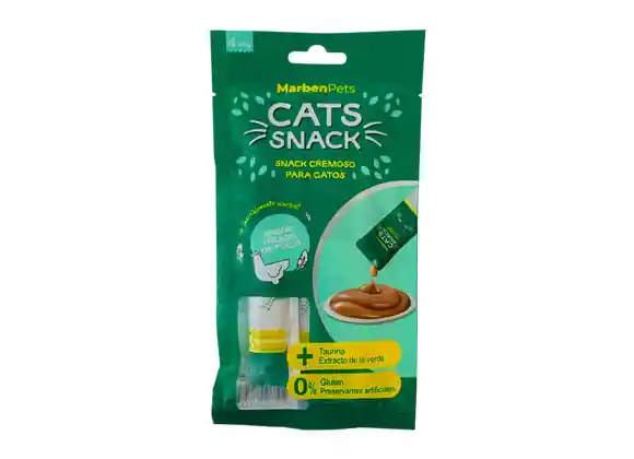 Cats Snack tubito cremoso son suaves y cremosas golosinas para gatos que combinan una suave textura y un increíble sabor en distintas variedades que le encantarán a tu gato. Taurina Añadida: Ayuda en el desarrollo del cerebro y en la salud de los ojos. Reforzado con extracto de té verde, ayuda a estimular el sistema inmunológico y prevenir caries dentales. No contienen gluten ni conservantes artificiales dañinos para tu gatito. Recomendaciones: Apto para gatitos mayores de 3 meses. Debes darlo en su totalidad una vez abierto (En caso de que te quede un poco puedes refrigerarlo solo por un par de días) No reemplaza su alimento Suministra uno o dos tubitos al día Ingredientes: Atún, Mejillón almidón de patata, Goma de konjak, Extracto de té verde, Levadura de cerveza. Componentes analíticos: Proteína bruta (Min) 6.0% Grasa Bruta (Min) 0.5% Fibra bruta (Max) 0.5% Ceniza bruta(Max) 2.5% Humedad (Max) 90%. Cada pack de Cats Snack contiene 4 tubos de 15g cada uno.