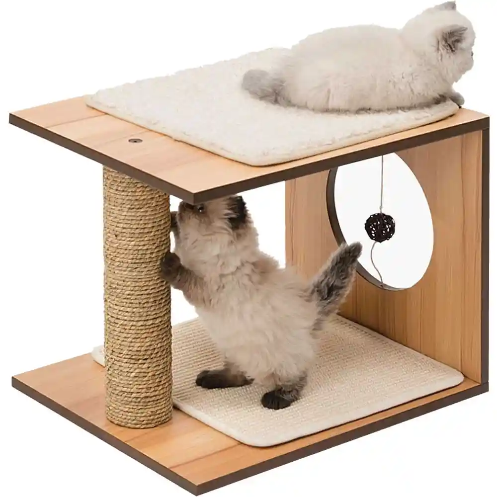 Centro de entretención para Gatos Fabricado con madera de alta densidad De color nogal