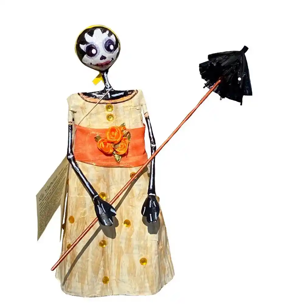 Catrina de inspiración mexicana hecha a mano. Producto de papel maché.