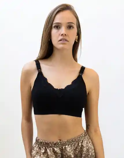 Bralette maternal negro, de algodón con guarda de encaje.