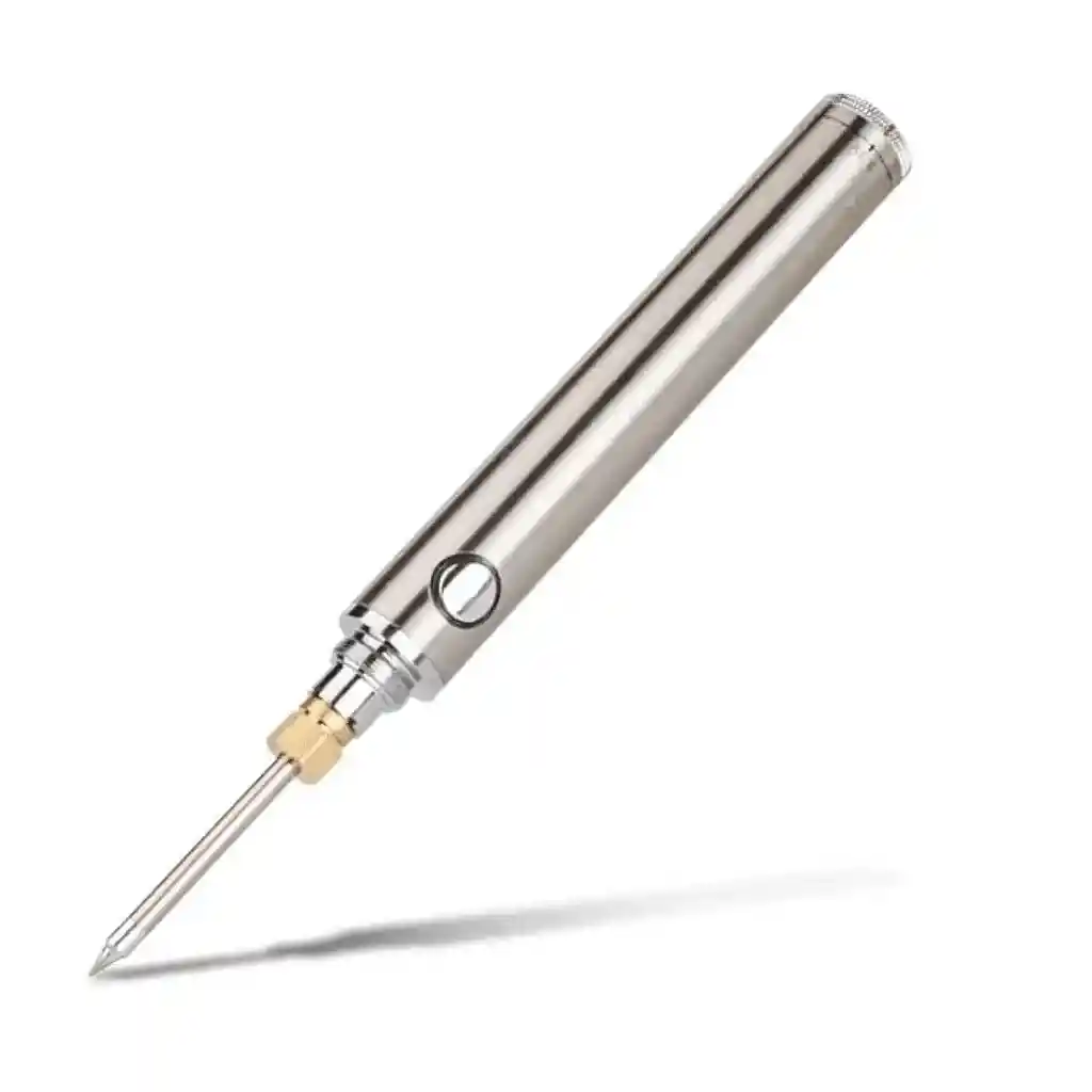 Cautín inalámbrico recargable. Cuando la luz del botón parpadea indica que la batería se está agotando. Posee autonomía de 40 minutos con la carga completa. Incluye: Cautín Soporte para cautín Protector para punta de cautín Cable USB para carga Estaño Instrucciones de uso: Para enceder el cautín debe presionar el botón 5 veces seguidas hasta que parpadee. Luego de encendido, deje presionando el botón para que caliente el cautín Para apagar el cautín debe presionar el botón 5 veces seguidas hasta que parpadeé.