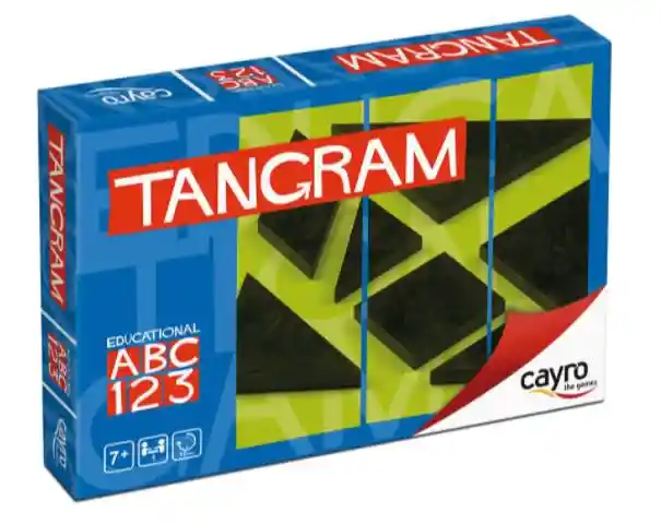 Este juego es un reto para tu inteligencia y un desafío para tu imaginación permitiéndote diseñar miles de figuras diferentes. El tangram es un juego de origen chino. Consta de 7 piezas denominadas TANS, 5 triángulos de tres tamaños diferentes, un cuadrado y un paralelogramo. Unidas estas figuras forman un cuadrado. Partiendo de las 7 piezas, se pueden formar al menos 1.600 figuras diferentes, animales, personajes, objetos, etc. Se recomienda de 7 años en adelante.
