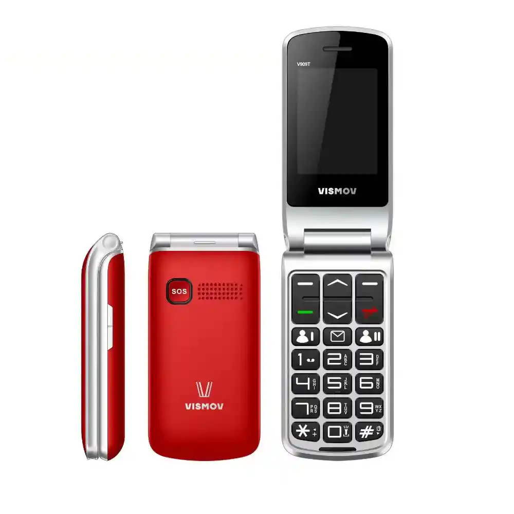 Bandas 4G: LTE 700/1700/2100/2600 MHz. 3G: HSPA 850/1900 MHz. 2G: GSM 900/1900 MHz. Adicionales: Boton SOS Bluetooth 5.0 Radio Linterna Dual SIM Big Button Alarma Calculadora. Contenido de la Caja. Equipo principal Vismov V909T. Cámara VGA. Pantalla 24’’ QVGA TFT display. Screen 320x240 pixels. Slot micro SD hasta 32GB 128 MB Memoria Interna 48 MB Memoria RAM. SO: RTOS. Batería 1.000 mAh Nano Simcard (4FF). Cargador de pared CE 5V 1.5A color negro salida tipo C (certificacion SEC).