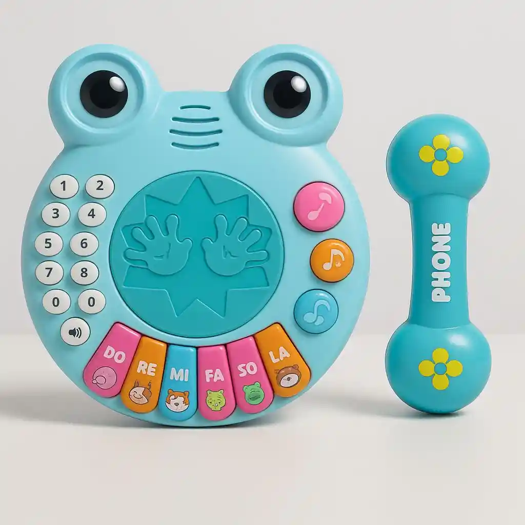 Características del producto: • Diseño divertido y colorido: Teléfono en forma clásica con teclas musicales tipo piano (Do-Re-Mi…) y animalitos ilustrados. • Sonidos interactivos: Emite melodías, efectos de llamada y sonidos de animales para estimular el aprendizaje auditivo. • Luces y botones funcionales: Atractivos botones con efectos luminosos que llaman la atención del bebé y promueven la coordinación. • Estimula habilidades tempranas: Ideal para el desarrollo sensorial, la motricidad fina y la asociación de sonidos con imágenes. • Función educativa musical: Incluye notas musicales básicas para que los pequeños exploren sonidos y ritmos. • Aprendizaje temprano: Perfecto para bebés desde los 6 meses en adelante. Promueve la imaginación y el juego simbólico. • Funciona con pilas (no incluidas) – fácil de encender y usar.