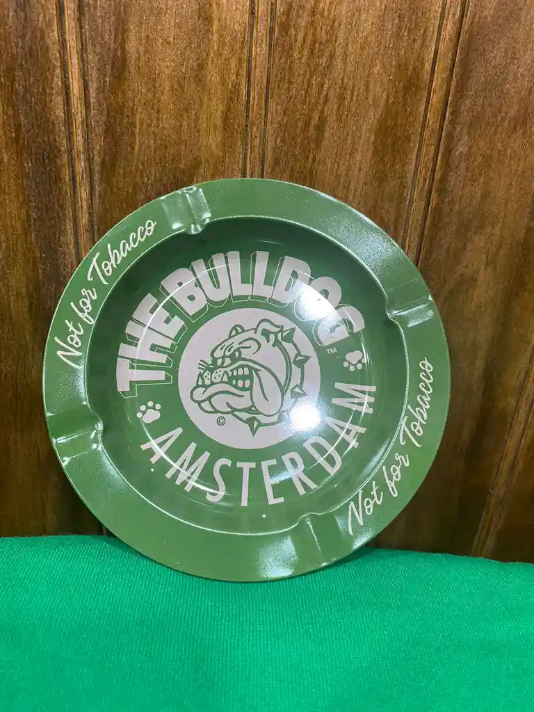 El cenicero bulldog metálico VERDE, es muy ligero con una impresión a todo color del logo original. Es muy fácil viajar con este cenicero porque es muy ligero.