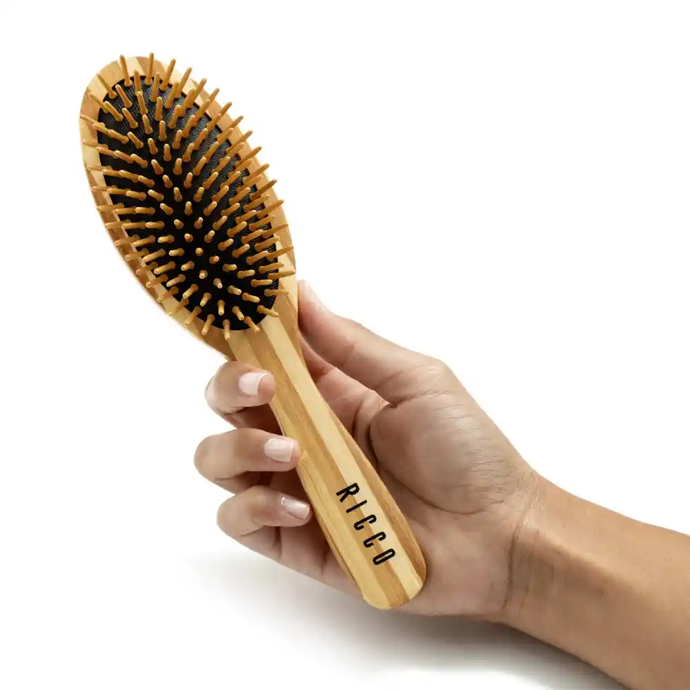 Cepillo para cabello largo con cerdas de bamboo natural, tamaño L. Es habitual para cualquier tipo de cabello y para uso diario. Producto RICCO