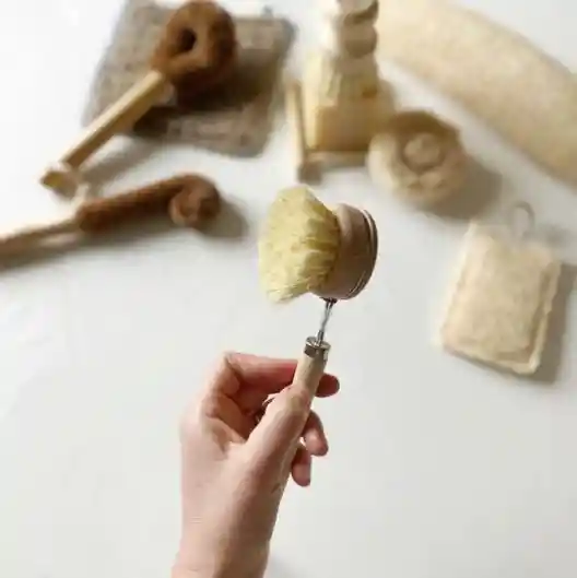 DESCRIPCION Limpiador fabricado con madera, fibra vegetal sisal y colgador metálico. Un cepillo lavaplatos de madera con cerdas vegetales duras. Ideal para lavar la loza sin enviar microplásticos al mar. Biodegradable, duradero y con cabezal intercambiable, para reducir los residuos. El repuesto lo puedes encontrar en el sitio como repuesta cepillo cabezal intercambiable. Tiene una abertura para colgarlo. Mango largo y fácil de usar. Duradero. Después de usar dejar en un lugar ventilado o colgado para que se seque. Las Fibras se ablandan una vez humedecido. Una vez su vida útil llega a su fin, puede ser compostado.