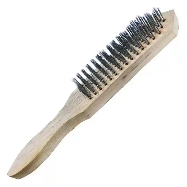 Con está escobilla podrás realizar diferentes labores de limpieza en superficies metálicas para quitar el oxido o suciedad incluso en madera y otros. Tamaño: 4cm ancho x 4cm alto x 27cm largo Tamaño Cerdas Acero: 2cm largo Material: Mango de Madera y Cerdas de Acero